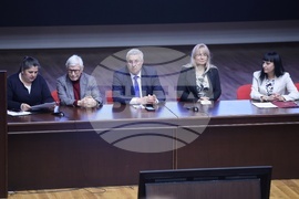 София (15 януари 2025) В Аула Максима на УНСС се провежда кръгла маса на тема "Достъпът до пазара за българските производители по агрохранителната верига" под егидата на ректора проф. д-р Димитър Димитров и по инициатива на акад. Атанас Атанасов и бившия министър на земеделието Кирил Вътев. На снимката (от ляво надясно): доц. д-р Мария Пенева, Катедра "Икономика на природните ресурси", УНСС, акад. Атанас Атанасов, акад. Атанас Павлов УХТ, Петя Татарска, "Иннова БМ" ЕООД, проф. Зорница Стоянова, катедра "Икономика на природните ресурси".