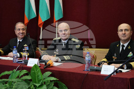 Варна (15 Януари 2025) В Щаба на Военноморските сили, се провежда официална церемония по смяна на командването на противоминната група в Черно море „MCM BLACK SEA“, в която участват командирите на Военноморските сили на Република България, Република Турция и Република Румъния. На снимката (от ляво надясно): адмирал Ерджумент Татлъоглу - командир на Военноморските сили на Турция, контраадмирал Кирил Михайлов - командир на Военноморските сили на България, вицеадмирал Михай Панайт - командир на Военноморските сили на Румъния.
