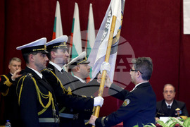 Варна (15 Януари 2025) В Щаба на Военноморските сили, се провежда официална церемония по смяна на командването на противоминната група в Черно море „MCM BLACK SEA“, в която участват командирите на Военноморските сили на Република България, Република Турция и Република Румъния. На снимката: капитан I ранг Павлин Петков - новият командир на тактическото формирование на Противоминната военноморска група в Черно море.