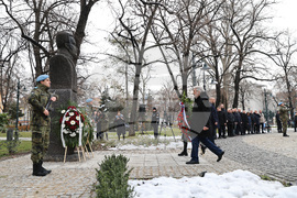 Пловдив (16 януари 2025) Пловдив отбеляза тържествено 147 години от Освобождението си от османско владичество Тържественото честване се състоя с поклонение пред паметника на капитан Александър Бураго в Дондуковата градина. Слово по повод годишнината произнесе Стоян Иванов - директор на Регионалния исторически музей в Пловдив. С минута мълчание бе почета паметта на загиналите при освобождението на Пловдив. Във военната церемония, включваща полагане на венци и цветя, участваха военен духов оркестър, представителен взвод, венценосци и представители на комитет „Родолюбие“. На снимката: директорът на Регионалния исторически музей в Пловдив Стоян Иванов.