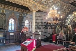 Шумен (19 януари 2025) Архиерейският наместник на Шуменската духовна околия отец Димитър отслужи литургия в православния храм "Свето Възнесение" в Шумен. Със слово към миряните в църквата се обърна иподякон Сава Сивриев. Той говори за болестта, изцелението и благодарността към Бога. На снимката (от ляво нядясно): отец Димитър и иподякон Сава Сивриев.