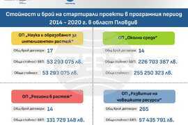 Стойност и брой на стартирали проекти в програмния период 2014-2020 г. в област Пловдив