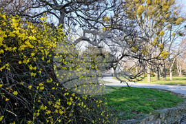 Варна (20 Януари 2025) Цъфнали храсти жълт жасмин радват минувачите в морската градина на Варна.