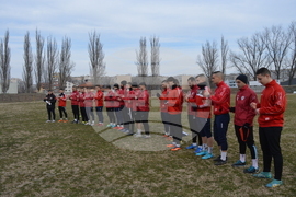 Видин (20 януари 2025) Футболният отбор на „Бдин” започна подготовка за пролетния полусезон на Северозападната Трета лига. Тя ще протече изцяло в базата на клуба във Видин. В началото на първото занимание беше отслужен водосвет. На снимката: старши треньорът на „Бдин” Александър Петров (вляво).