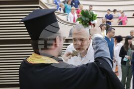 София (21 януари 2025) С традиционен ритуал, символизиращ почитта към акушерките и лекарите се отбелязва Бабинден в Специализираната болница за активно лечение по акушерство и гинекология (СБАЛАГ) „Майчин дом". На снимката: изпълнителният директор на „Майчин дом“ проф. д-р Иван Костов и отец Николай.