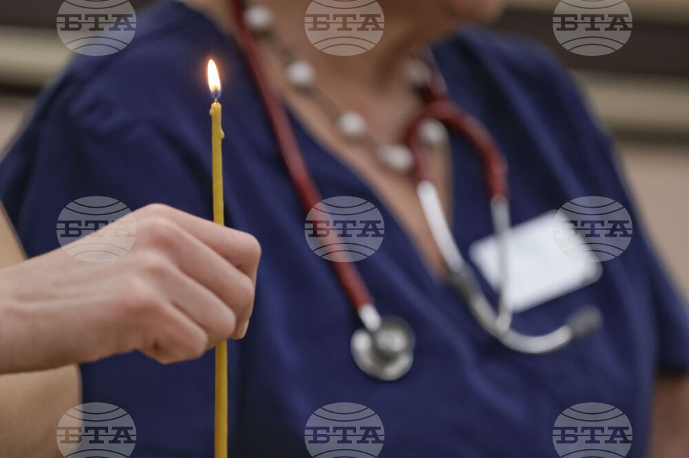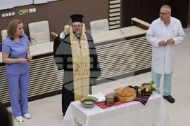 София (21 януари 2025) С традиционен ритуал, символизиращ почитта към акушерките и лекарите се отбелязва Бабинден в Специализираната болница за активно лечение по акушерство и гинекология (СБАЛАГ) „Майчин дом". На снимката: отец Николай.