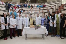 София (21 януари 2025) С традиционен ритуал, символизиращ почитта към акушерките и лекарите се отбелязва Бабинден в Специализираната болница за активно лечение по акушерство и гинекология (СБАЛАГ) „Майчин дом". На празника присъстват отец Николай, изпълнителният директор на „Майчин дом“ проф. д-р Иван Костов и проф. Асен Николов.
