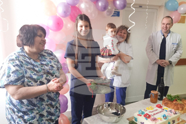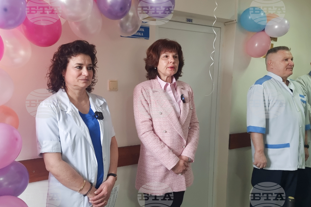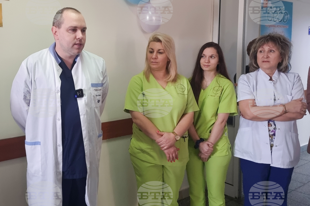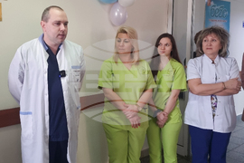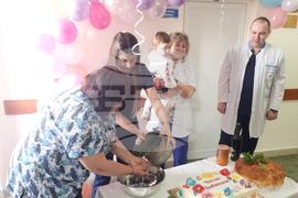Плевен (21 януари 2025) Денят на родилната помощ, познат и като Бабинден, бе отпразнуван в Университетската многопрофилна болница за активно лечение „Д-р Георги Странски” в Плевен с измиване на ръцете на две от най-опитните акушерки - Юлия Стоянова и Ваня Захариева, както на началника на Клиниката по акушерство и гинекология доц. д-р Никола Поповски. На снимката: В Клиниката по акушерство и гинекология вече е специално обзаведена и стая за изписване на новородени.