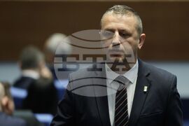 София (23 януари 2025) Народните представители провеждат редовно заседание на Народното събрание. Депутатите изслушват министри относно принудителното изискване тежкотоварните автомобили да се вписват във виртуална опашка на Граничен контролно-пропускателен пункт „Дунав мост“ при Русе, въпреки влизането на България в Шенгенското пространство и отпадането на граничния контрол за товарните превози. На снимката: председателят на Управителния съвет на Агенция „Пътна инфраструктура“ Йордан Вълчев.