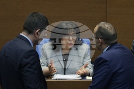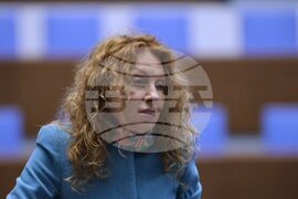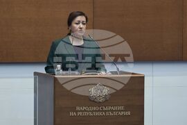 София (23 януари 2025) Народните представители провеждат редовно заседание на Народното събрание. Депутатите изслушват министри относно принудителното изискване тежкотоварните автомобили да се вписват във виртуална опашка на Граничен контролно-пропускателен пункт „Дунав мост“ при Русе, въпреки влизането на България в Шенгенското пространство и отпадането на граничния контрол за товарните превози. На снимката: министърът на финансите Теменужка Петкова.