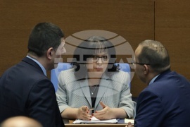София (23 януари 2025) Парламентът провежда редовно заседание в сградата на Народното събрание. Депутатите изслушват министри относно принудителното изискване тежкотоварните автомобили да се вписват във виртуална опашка на гранично контролно-пропускателен пункт "Дунав мост“ при Русе, въпреки влизането на България в Шенгенското пространство и отпадането на граничния контрол за товарните превози. На снимката: министърът на финансите Теменужка Петкова