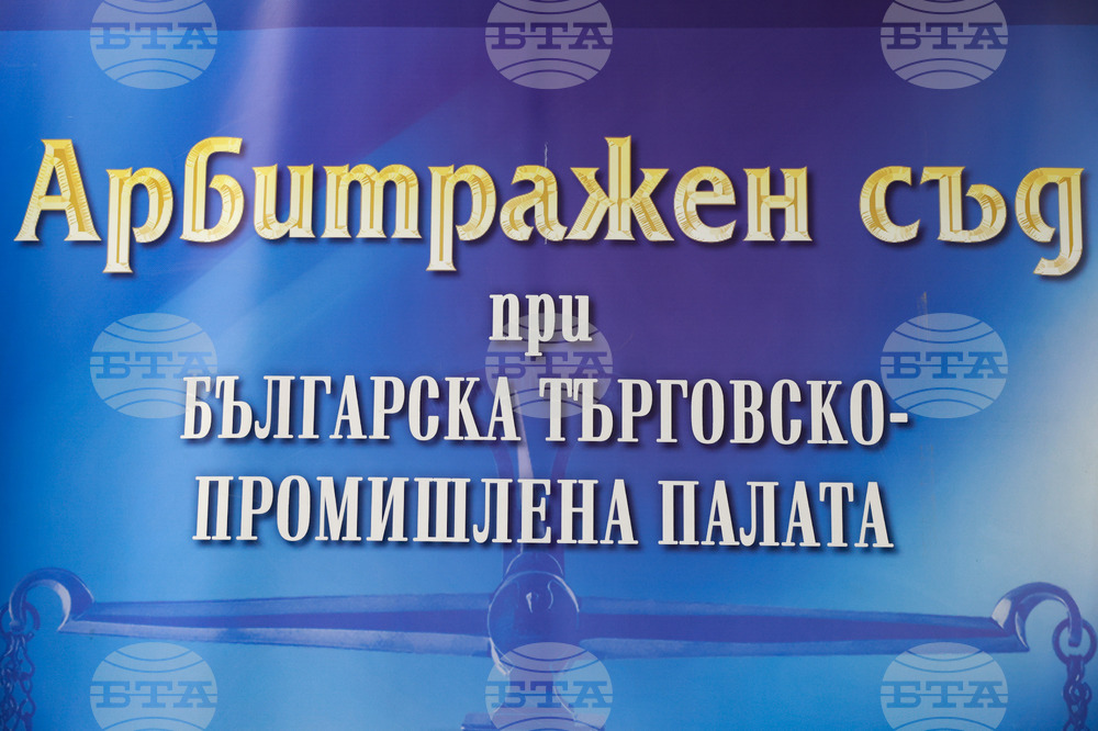 София (23 януари 2025) Среща на Евроклуба при Българската търговско-промишлена палата (БТПП) по повод Полското председателство на Съвета на ЕС се провежда в сградата на БТПП. На снимката: табела на Арбитражния съд при БТПП.