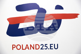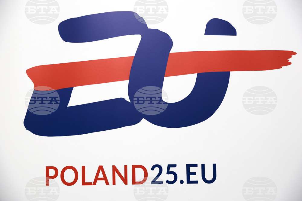 София (23 януари 2025) Среща на Евроклуба при Българската търговско-промишлена палата (БТПП) по повод Полското председателство на Съвета на ЕС се провежда в сградата на БТПП. На снимката: логото на Полското председателство на Съвета на Европейския съюз.