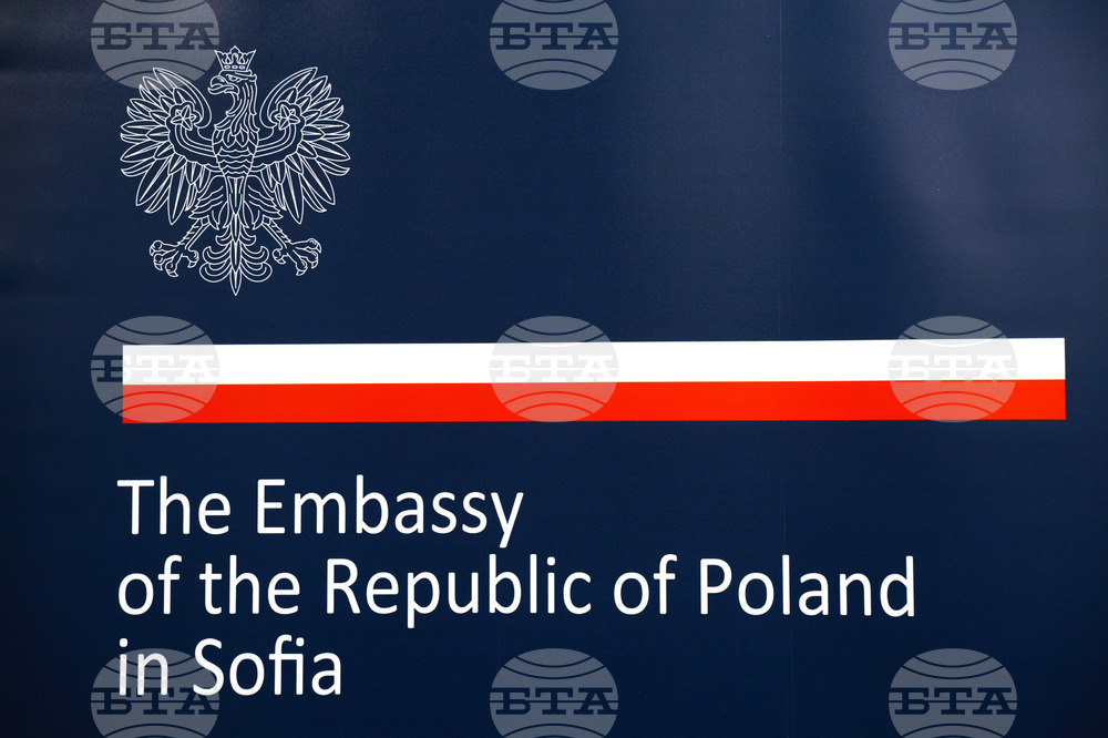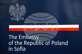 София (23 януари 2025) Среща на Евроклуба при Българската търговско-промишлена палата (БТПП) по повод Полското председателство на Съвета на ЕС се провежда в сградата на БТПП. На снимката: табела на Посолството на Република Полша в София.