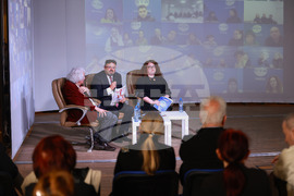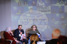 София (23 януари 2025) „ЛИК на 60 години“ е темата за януари на изданието на Българската телеграфна агенция (БТА). Неговият първи брой излиза на 8 януари 1965 година, а името е абревиатура, зад която стоят думите „литература“, „изкуство“ и „култура“. Списанието се представя днес в зала „МаксиМ” в БТА. Събитието се провежда съвместно чрез видеовръзка и в останалите национални пресклубове на агенцията в страната. На снимката: Петя Александрова.