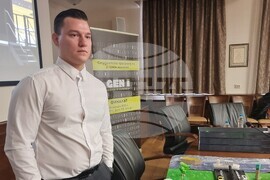 Варна (24 януари 2025) С проекти за „умна“ количка за пазаруване, сензорна витрина за плодове и зеленчуци, мобилна каса за самообслужване, сезонни супермаркети и приложение-игра, което насърчава клиентите да рециклират, се представят студентските екипи, състезавали се в първата по рода си в България иновативна образователна програма "GEN I: ИНОВАЦИЯ ГЕНЕРАЦИЯ". Зад нея стоят инициаторите от "Schwarz IT - България", с подкрепата на две от големите търговски вериги у нас, и в партньорство с три варненски университета - Икономическия, Техническия и Висшето военноморско училище. На снимката: Александър Няголов от Техническия университет представя контейнер със сгъваеми стелажи, които могат да предлагат стоки в по-малки населени места и сезонни курорти.