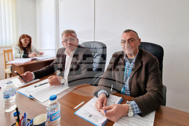Доспат (28 януари 2025) Общинският съвет (ОбС) - Доспат прие днес на редовно заседание ценоразпис и годишен план за ползване на дървесина, добита от горските територии, собственост на общината. Съветниците одобриха ценоразписите за продажба на дървесина на склад, на стояща дървесина, за добив и извоз до временен склад и за извършване на услуги по издаване на разрешителни, маркиране и ексидиране на сортиментите. На снимката: председателят на ОбС Адалберт Ферев и секретарят на Общината Веселин Калфов (вдясно).