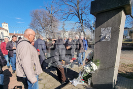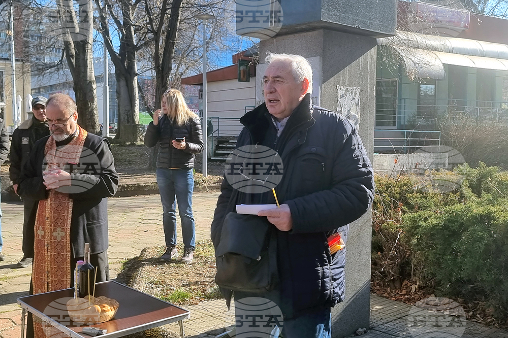 Плевен (1 февруари 2025) В Плевен с възпоменателна церемония се почита паметта на жертвите на комунистическия режим. Заупокойна молитва се отслужва от отец Антон пред Паметника на избитите без съд и присъда след 9 септември 1944 г., разположен в градинката до жп гарата в града. Сред присъстващите са членове и симпатизанти на Български земеделски народен съюз, „Да, България” и Демократи за силна България. Поднесени бяха венци и цветя. На снимката: областният председател на БЗНС инж. Милчо Илиев произнася слово по повод Деня на почит на жертвите на комунистическия режим.