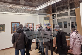 Смолян (3 февруари 2025) В Клуба на дейците на културата (КДК) в Смолян днес се открива възпоменателна изложба с творби на художника проф. Михаил Карапаунов от село Момчиловци. В колекцията са включени 35 портрети, автопортрети, пейзажи и фигурални композиции от личния фонд на художника. На снимката: сред картините е и портрет на Тодор Живков.