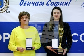 София (4 февруари 2025) Церемонията по награждаване на най-добрите спортисти на София за 2024-а и обявяване лицата на инициативата "Европейска столица на спорта" за 2025 година се провежда в Музея на спорта. На снимката: олимпийската шампионка Таня Богомилова (вляво), плувкинята Габриела Георгиева (вдясно).