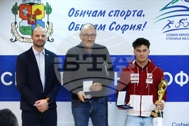 София (4 февруари 2025) Церемонията по награждаване на най-добрите спортисти на София за 2024-а и обявяване лицата на инициативата "Европейска столица на спорта" за 2025 година се провежда в Музея на спорта. На снимката: вицепрезидентът на федерацията по ски Георги Бобев и сноубордистът Кристиан Георгиев .