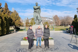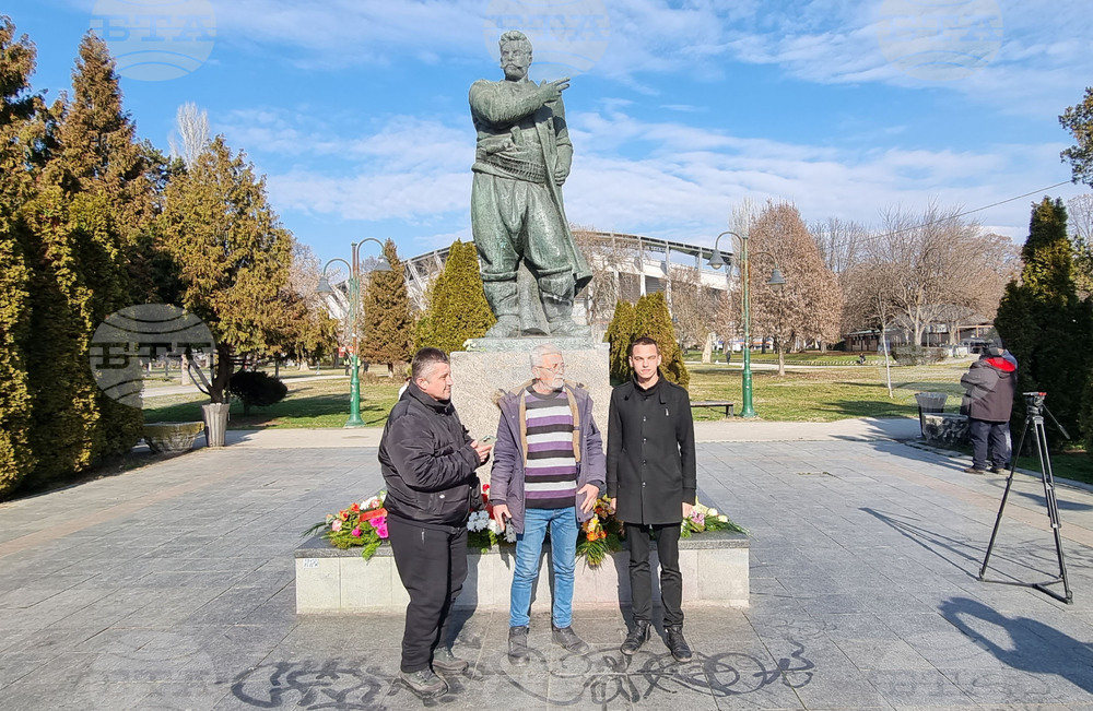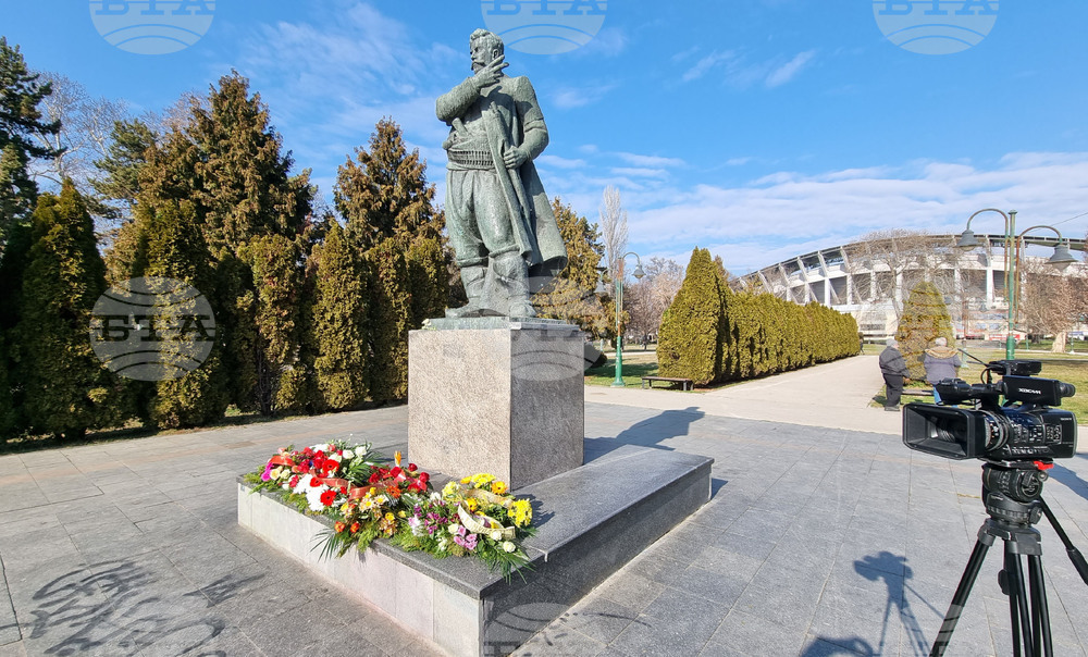 Скопие (4 февруари 2025) Пред паметника на Гоце Делчев в градския парк по повод 153-ата годишнина от рождението на Гоце Делчев цветя положиха българи, живеещи в Република Северна Македония, и представители на българската общност в страната.