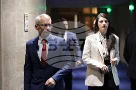 София (5 февруари 2025) По предложение на „Продължаваме промяната-Демократична България“ изслушването на министъра на вътрешните работи Даниел Митов, председателя на Държавна агенция „Национална сигурност“ (ДАНС) Пламен Тончев, директора на Главна дирекция „Национална полиция“ (ГДНП) към МВР Мирослав Рашков (вляво) зам.-директора на Главна дирекция „Борба с организираната престъпност“ (ГДБОП) към МВР старши комисар Боян Раев (вдясно), относно предприети действия по издирване на Петьо Петров, известен като Петьо Еврото, във връзка с повдигнатите срещу него обвинения се отлага за утре.