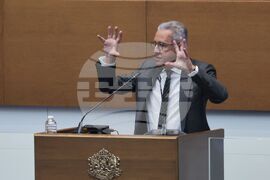 София (5 февруари 2025) Парламентът провежда редовно заседание в сградата на Народното събрание. По предложение на „ДПС-Ново начало“ се обсъжда проекторешението им за създаване на Временна комисия за установяване на факти и обстоятелства относно дейността на Джордж Сорос и Александър Сорос и техните фондации на територията на България. На снимката: депутатът от „ДПС-Ново начало“ Станислав Анастасов.