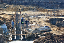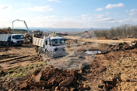 Созопол (7 февруари 2025) Първа копка за изграждането на две нови инсталации на територията на Регионалното депо за битови отпадъци се провежда край созополското село Равадиново. Проектът ще бъде изпълнен чрез публично-частно партньорство между дружеството „Антеа Сортинг“ и община Созопол. Общата му стойност е около 12 млн. лева. Депото ще разполага със сепарираща инсталация и такава за компостиране на биоразградими отпадъци. На снимката: кметът на Созопол Тихомир Янакиев (в средата).