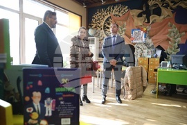 Самоков (10 февруари 2024) Кметът на община Самоков инж. Ангел Джоргов (вдясно), генералният директор на БТА Кирил Вълчев и ръководителят на Представителството на Европейската комисия в България Йорданка Чобанова (вляво) са на посещение в Детската библиотека в Самоков. Те разгледаха детските книги и научиха повече за работата на културната институция.