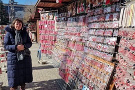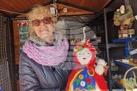 Хасково (10 януари 2025) Първите мартеници украсиха централната градска част на Хасково в традиционното издание на Мартенския базар, организиран от община Хасково. На част от пространството на площад „Свобода“ са разположени ръкоделията на членове на Регионалната камара на занаятчиите. На пл. „Атлантически“ търговците предлагат също разнообразие от мартеници и сувенири. На снимката: членът на Регионалната камара на занаятчиите в Хасково Ирена Александрова.