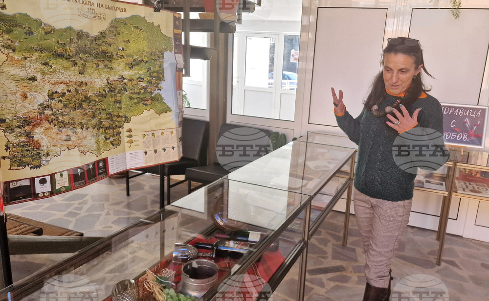 Разград (10 февруари 2025) Изложба, посветена на виното, любовта и българските традиции посреща читателите на Регионалната библиотека „Проф. Боян Пенев“ в Разград. Тематичните витрини, посветени на празниците, празника на винарите и лозарите Трифон Зарезан са подредени във фоайето на културната институция. Празнично настроение създава и вълшебният куфар с произведения, посветени на любовта. На снимката: главният библиотекар Мила Маринова.