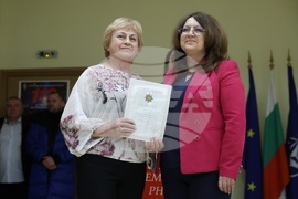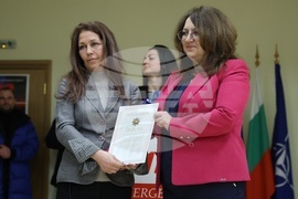 София (11 февруари 2025) В сградата на МВР се отбелязва денят на Единния европейски номер за спешни повиквания 112 (ЕЕНСП 112). Участват представители на МВР, Столична община, БЧК-ПСС, служби за спешно реагиране и Центъра за спешна медицинска помощ по въздуха - МЗ. На снимката: административният секретар на МВР Лилия Бочева (вляво).