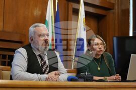 Бургас (11 февруари 2025) В заседателната зала на Община Бургас се провежда първото открито пленарно заседание на Местната комисия за борба с противообществените прояви на малолетни и непълнолетни (МКБППМН). По време на заседанието се представя отчетът на комисията за изминалата година. Присъстват представители на Община Бургас и прокуратурата. На снимката: зам.-кметът по Образование, здравеопазване, социални дейности и младежки политики на Община Бургас Михаил Нено и секретарят на МКБППМН Десислава Василева.