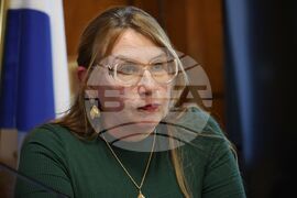 Бургас (11 февруари 2025) В заседателната зала на Община Бургас се провежда първото открито пленарно заседание на Местната комисия за борба с противообществените прояви на малолетни и непълнолетни (МКБППМН). По време на заседанието се представя отчетът на комисията за изминалата година. Присъстват представители на Община Бургас и прокуратурата. На снимката: представителят на Районна прокуратура Бургас Мариана Калудова.