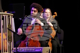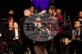 София (13 февруари 2025) Британският цигулар и виолист Найджъл Кенеди (вляво) изнася концерт в зала 1 на НДК. Цигуларят представя авторския си концерт за цигулка Номер 1 Fur Ludwig Van, което е най-новото му произведение. Участие взимат Георги Андреев (гъдулка) и Врачанската филхармония с диригент Христо Павлов.