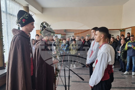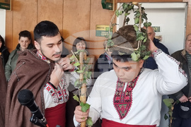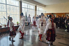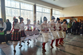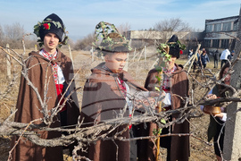 Плевен (14 февруари 2025) В Професионалната гимназия по лозарство и винарство „Александър Стамболийски“ в Плевен бе спазен ритуала по зарязване на лозята на празника Трифон Зарезан. Това извърши по традиция новоизбраният Цар на лозята, който заедно със свитата си заряза лозите в лозовите масиви на училището и отправи своите благословии за плодородна година. На снимката: за празничната атмосфера допринесоха със своите изпълнения танцьорите от фолклорен състав „Луди - Млади“ с художествен ръководител Христина Кънчева.