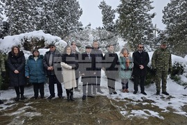 Село Къкрина (18 февруари 2025) Паметта на Апостола бе почетена в Къкринското ханче с възстановка на залавянето му, военен ритуал и поднасяне на венци и цветя. На снимката: кметът на община Ловеч Страцимир Петков (вляво).