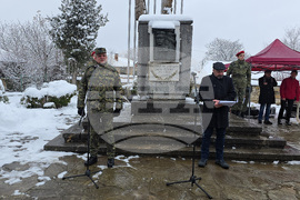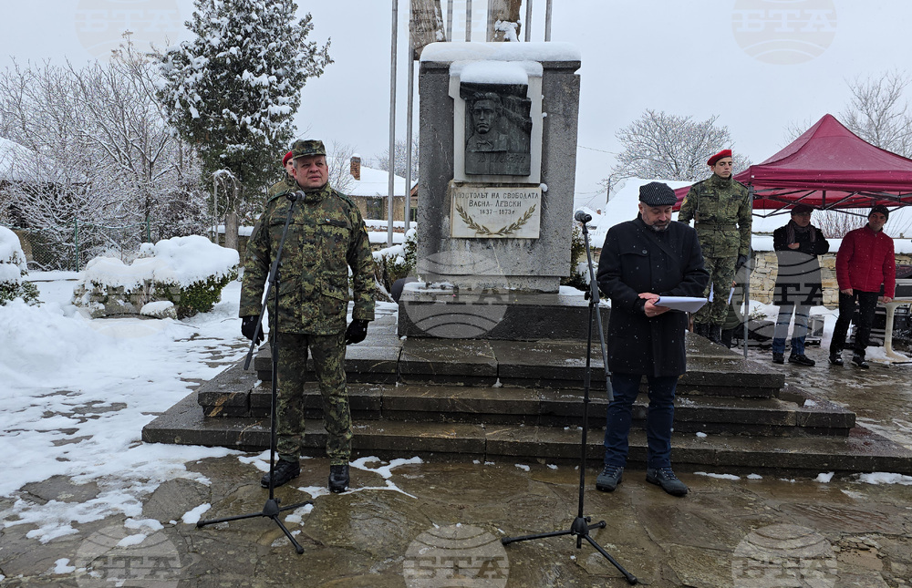 Село Къкрина (18 февруари 2025) Паметта на Апостола бе почетена в Къкринското ханче с възстановка на залавянето му, военен ритуал и поднасяне на венци и цветя. На снимката: заместник-началникът на Националния военен университет „Васил Левски” във Велико Търново полк. Георги Крайнов (вляво).