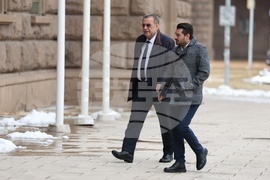 София (18 февруари 2025) Президентът свиква в президентската институция заседание на Консултативния съвет за национална сигурност (КСНС) на тема „Рискове и заплахи пред националната сигурност, произтичащи от разпространението на наркотични и упойващи вещества сред подрастващото поколение и злоупотребата с тях“. Участниците в заседанието влизат в сградата на президентство. На снимката: премиерът Росен Желязков (в средата).