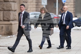 София (18 февруари 2025) Президентът свиква в президентската институция заседание на Консултативния съвет за национална сигурност (КСНС) на тема „Рискове и заплахи пред националната сигурност, произтичащи от разпространението на наркотични и упойващи вещества сред подрастващото поколение и злоупотребата с тях“. Участниците в заседанието влизат в сградата на президентство. На снимката: председателят на Народното събрание Наталия Киселова.