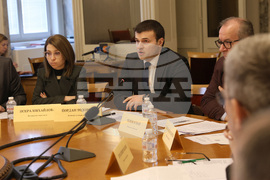 София (18 февруари 2025) Комисията по енергетика провежда заседание в сградата на Народното събрание. На снимката присъстват: зам.-председателите на комисията Красен Кръстев, Андрей Вълчев. председателят на комисията Павела Митова (вдясно).