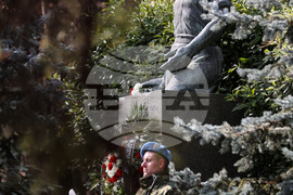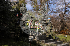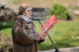 Пловдив (19 февруари 2025) С поднасяне на венци и цветя пред паметника на Васил Левски на централната алея на Бунарджика в Пловдив и едноминутно мълчание бе почетена 152-ата годишнина от трагичната гибел на Апостола на свободата Васил Левски. На снимката: Вихра Григорова, художник, изкуствовед, общественик, член на Общински комитет „Васил Левски“ Пловдив.