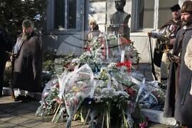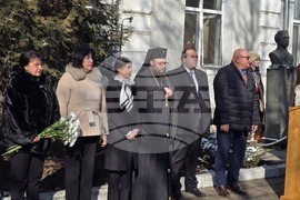 Видин (19 февруари 2025) С поклонение пред бюст-паметника на Васил Левски и поднасяне на венци и цветя отбелязаха 152 години от гибелта на Апостола на свободата във Видин. Церемонията започна със заупокойна молитва, отслужена от Видинският митрополит Пахомий в катедрален храм „Св. Димитър Солунски“, след което литийно шествие се отправи към паметника на Васил Левски. На снимката: кметът община Видин д-р Цветан Ценков.