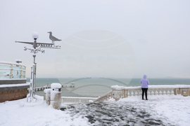 Бургас (19 февруари 2025) Сняг е покрил Морската градина и плажната ивица на Бургас.