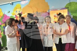 Добрич (20 февруари 2025) Обновеното педиатрично отделение в Многопрофилната болница за активно лечение (МБАЛ) в Добрич се открива официално днес. На снимката: отец Петър.