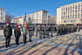 Хасково (20 февруари 2025) На площад „Свобода“ в Хасково се състоя тържествена церемония по изпращане на военнослужещи от маневрена рота в състава на регионално командване „Запад” в Стабилизиращите сили на НАТО в Косово (KFOR). Строят прие началникът на отбраната адмирал Емил Ефтимов. Молебен за здраве на военнослужещите отслужи викарият на Пловдвивския митрополит - Белоградчишкият епископ Поликарп.