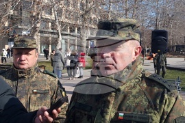 Хасково (20 февруари 2025) На площад „Свобода“ в Хасково се състоя тържествена церемония по изпращане на военнослужещи от маневрена рота в състава на регионално командване „Запад” в Стабилизиращите сили на НАТО в Косово (KFOR). Строят прие началникът на отбраната адмирал Емил Ефтимов (на снимката). Молебен за здраве на военнослужещите отслужи викарият на Пловдвивския митрополит - Белоградчишкият епископ Поликарп.