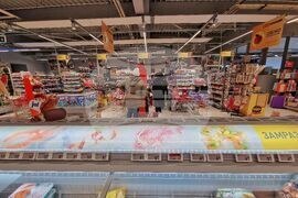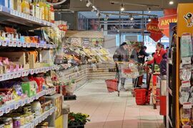 Бургас (20 февруари 2025) По инициатива на няколко организации днес се провежда бойкот на пазаруването в магазините от големите търговски вериги. Инициативата се осъществява за втори път в рамките на месец февруари. На снимката: хипермаркет от търговска верига за продажба на хранителни продукти и други стоки за бита.