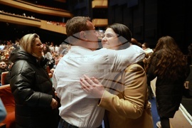София (20 февруари 2025) Документален филм разказва за живота и професионалния път на журналиста Милен Цветков. Премиерата на „Милен“ е днес, 20 февруари, в зала 1 на Националния дворец на културата (НДК). На снимката: дъщерята на Милен Цветков Калина Цветкова (вдясно).